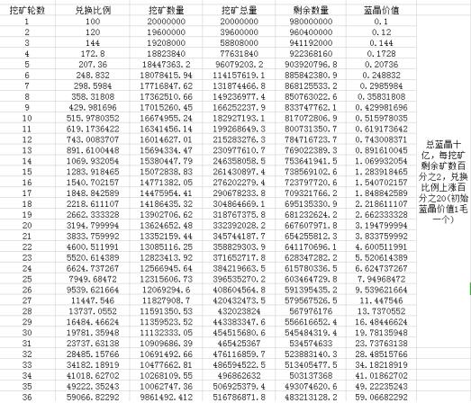 而藍晶10億總量不變的,每合成剩余總量的百分之2,兌換難度增加百分之20