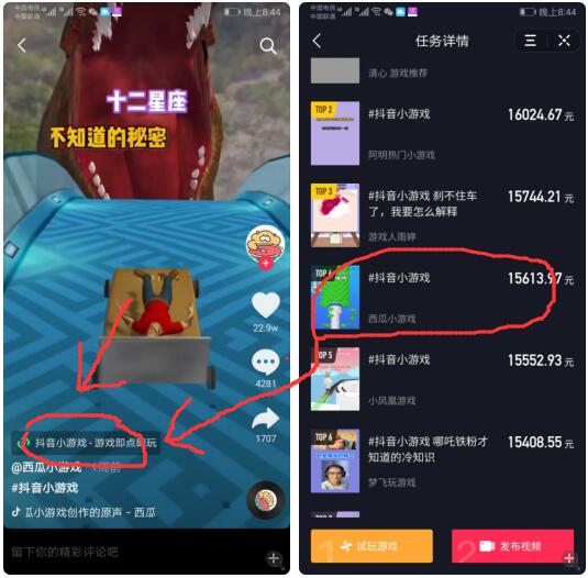 我們刷抖音的時(shí)候用肯定會(huì)刷到這種小游戲的,抖音的左下角就能看到。一個(gè)吃豆豆綠色圖標(biāo)的(淘客的是黃色的購(gòu)物車)。沒(méi)錯(cuò)這個(gè)圖標(biāo)就代表這個(gè)視頻在做游戲推廣。而我只要你配音好玩,或者小游戲看起來(lái)吸引人的話。很多人都會(huì)進(jìn)去玩玩(重點(diǎn)是小游戲不用下載,直接抖音在線玩)比如下圖:一個(gè)視頻收益就有一萬(wàn)五。是不是瞬間就覺(jué)得我這么多年玩游戲真的是白玩了。是不是感覺(jué)自己錯(cuò)過(guò)了幾個(gè)億呢!