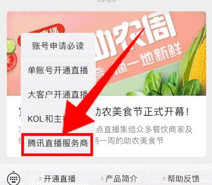 服務商渠道開通的話,也是在在騰訊直播助手公眾號菜單欄中點擊“騰訊直播服務商”,他會通過彈出的圖文信息,聯系合作服務商;根據服務商的引導操作,并支付599元/半年的官方技術費用,等審核通過后開通直播。