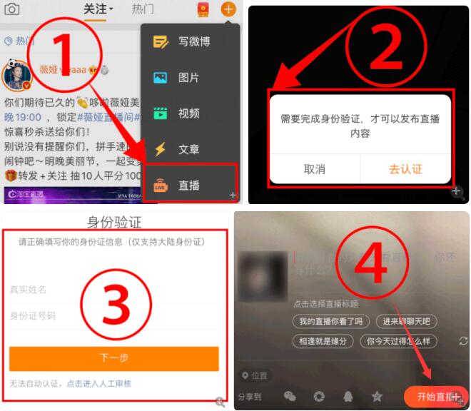 2,微博直播開通流程: