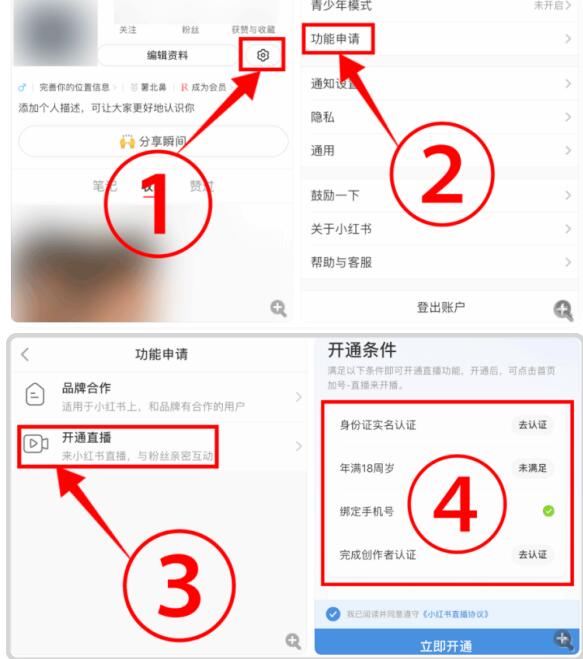 4,小紅書直播開通流程: