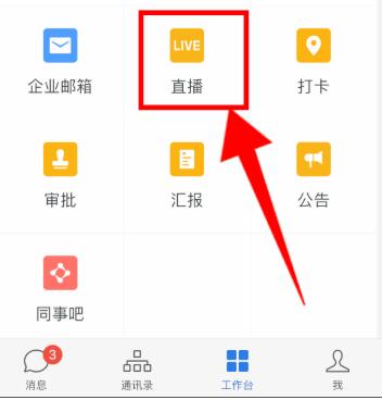 開播流程:企業微信APP——工作臺——直播。