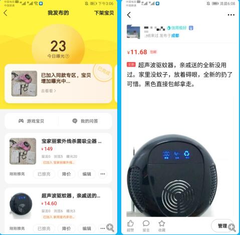 那么我隨便找了兩款,一款除螨器(利潤在50左右),一款滅蚊燈(利潤在10元左右)。注意文案,和我們閑魚實操教程一樣!