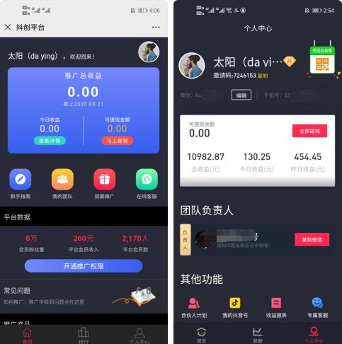 正如圖中顯示的心里測評類別的,別小看這么一個小東西,基于抖音眾多的用戶,賺起錢的不要不要的,因為我自己之前做的是抖推貓,給大家看一下同樣是小程序變現的收入(圖右),抖創因為新平臺剛剛注冊,暫時沒有收入。