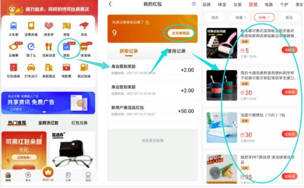 另外還有一個福利,就是大家新用戶注冊有50元紅包,每天簽到有2元紅包,可以直接兌換商品,反正就是兩個字:白嫖