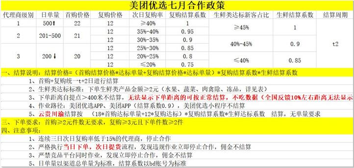 如果是小團(tuán)隊,可以接二手單,價格其實(shí)也不算低,可以去剛剛?cè)?span style="color: #FF0000;">接單么找一下(這個是專門接單的平臺),剛剛找到了一個,這是他給我最新的七月美團(tuán)優(yōu)選合作政策!