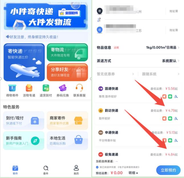 一般都是一些小程序或者APP直接下單會相當便宜,這些平臺都是商家渠道,相比自己直接去寄件會便宜很多(如圖)
