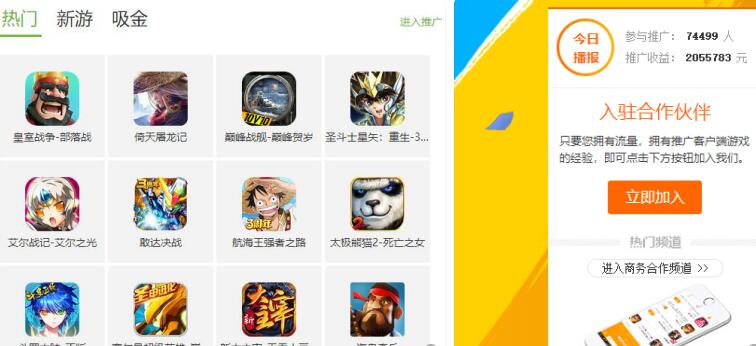 而如今的互聯(lián)網(wǎng)正PC端逐漸轉(zhuǎn)向移動端,手游也會是近幾年的大熱門,也許大家和老猴子以前想法一樣,玩手機(jī)游戲賺錢無非就是搬磚,做商人,代練之類的。都是賺辛苦錢。而且你還得足夠的了解游戲才行,連游戲都不會玩又何來賺錢呢?但是經(jīng)過了長時(shí)間的研究,老猴子認(rèn)為賺錢還是向根源看起,既然真正在游戲里面愿意消費(fèi)的玩家才是經(jīng)濟(jì)支撐,那么幫游戲商推廣游戲,然后拿玩家的充值提成可不可以呢?當(dāng)然可以,那就是手游CPS推廣!