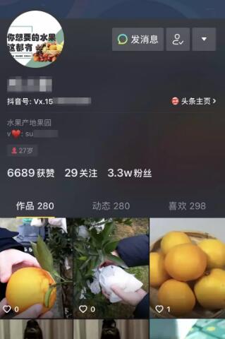 引流工作:擁有4臺手機注冊了4個號,直接搬運其它平臺的原產地水果短視頻上傳(自己根本不拍),每天2更,1個多月,4個號漲粉3萬+。