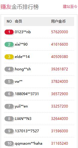 那么做一個我愛廣告任務網這樣一個網站能賺多少錢呢?老版本網站還有提現金額統計,現在好像沒有了,不過咱們也能估算??纯磁判邪瘢蝗f金幣等于5元,光是排行榜提現就已經超過了百萬,而網站的提成不會低于20%,這筆賬大家應該都能算吧。難怪這么多人要模仿做一個這樣的站呢。